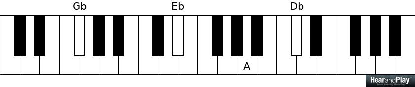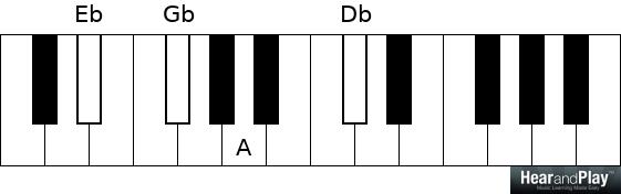 Works well with half-diminished 7 chords too. Here’s the normal way to play an Eb half-dim 7: