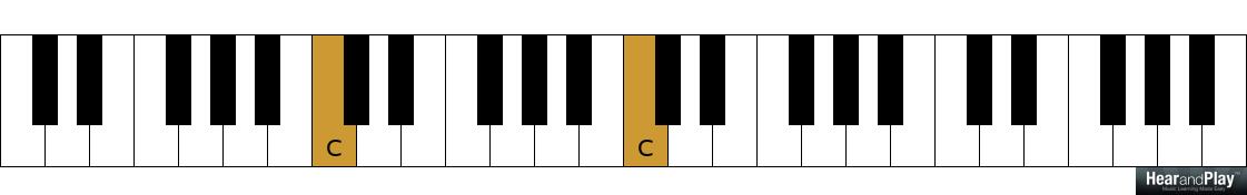 Also, it’s important to note that the tones of the C major triad are related by the tertian harmony. What this means is that the distance between the successive tones of the C major triad is based on third intervals.
