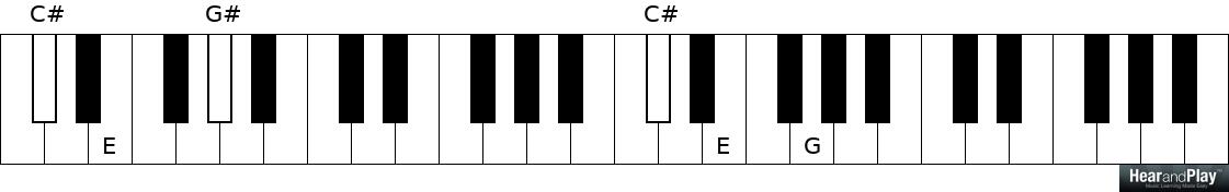 However, it’s easier to see it as a major third interval that is lowered by a semitone (half step). In the key of C major, a major third is:
