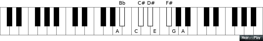 The A dominant seventh (flat ninth) chord: