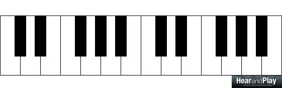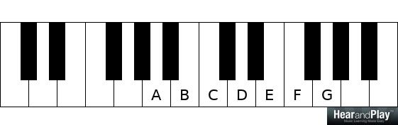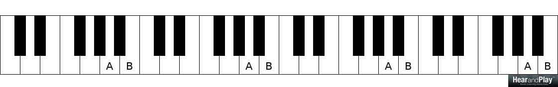 Now that you’re familiar with notes on the left and right of the groups of black notes in twos and threes, let’s look at the notes in-between.