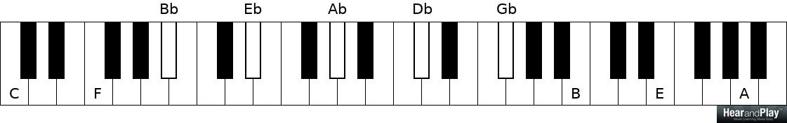 C F Bb Eb Ab Db Gb/F# B E A D G C