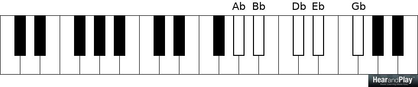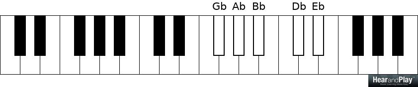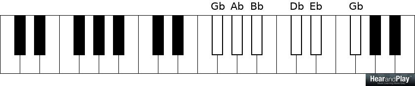 Playing all the black notes on the piano from Gb to Gb: