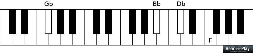 Formation of the Gb major seventh chord will require knowledge of the Gb major scale: