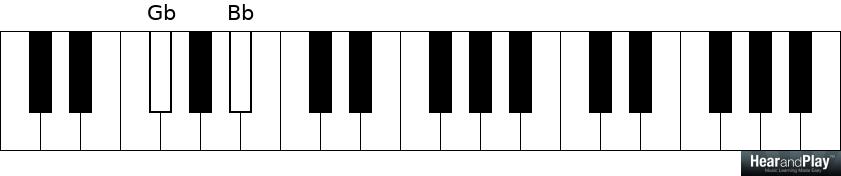 Two important notes in this scale are the first and third tones which are Gb and Bb: