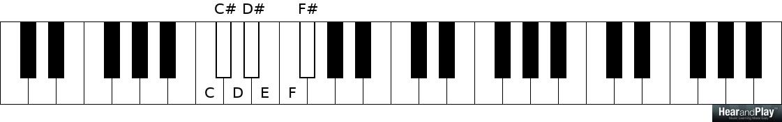 …encompasses the first six half-steps, while from F# to C (an inverted tritone):