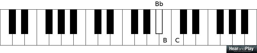 …and another half step above A# is B: