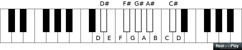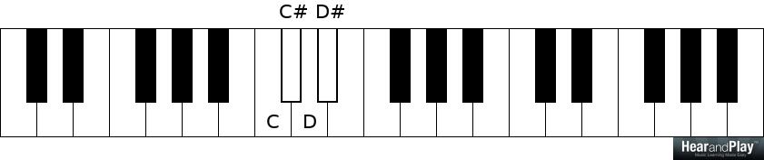 …and another half step above D is D#: