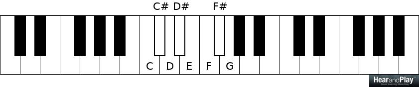 …and another half step above F is F#:
