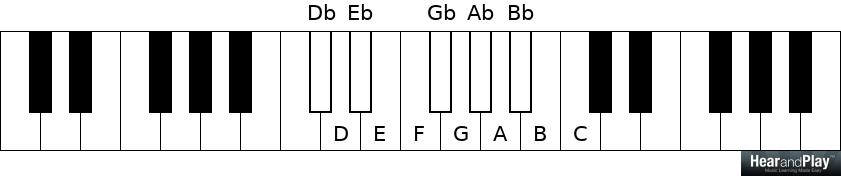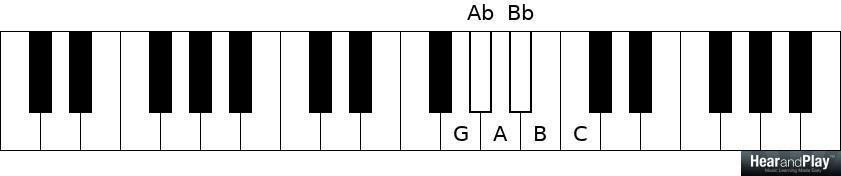 Conversely, we can group white notes on the piano from A to G:
